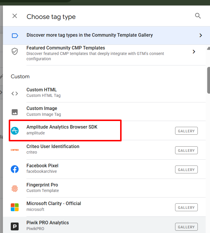 - Search for “Amplitude Analytics Browser SDK” and select the official template by Amplitude. Click Add to workspace.