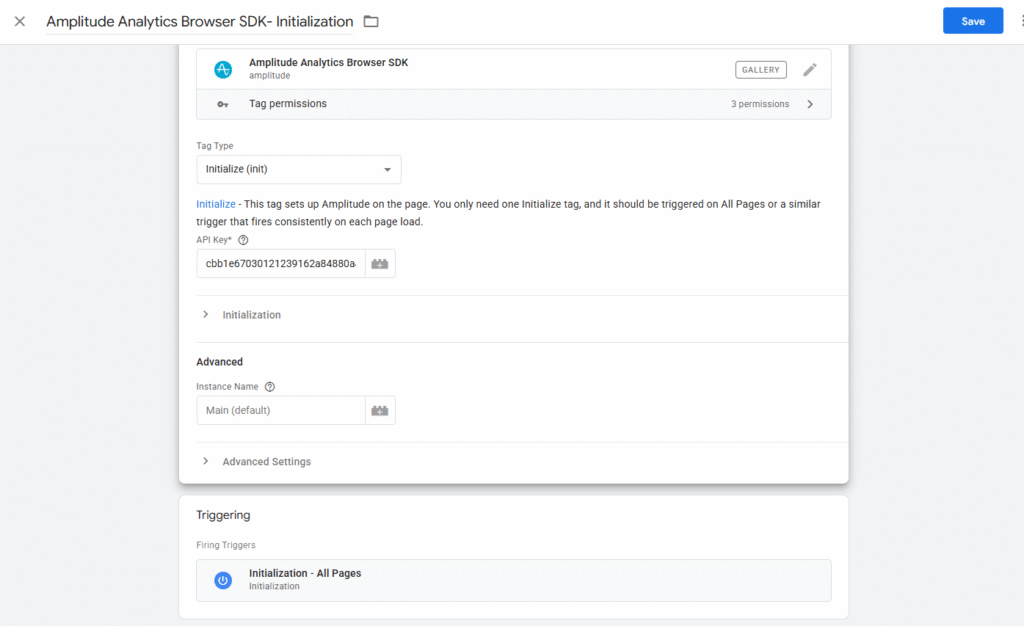 - Name the tag something clear, like “Amplitude – Initialization,” and save it.
