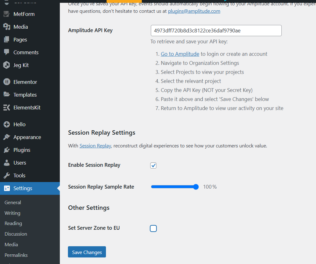 - Save Changes. That’s it! Amplitude is now active across your entire site.