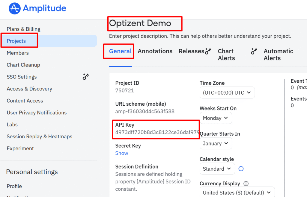 - Create a Project: Inside your Amplitude account, set up a new project for your website.