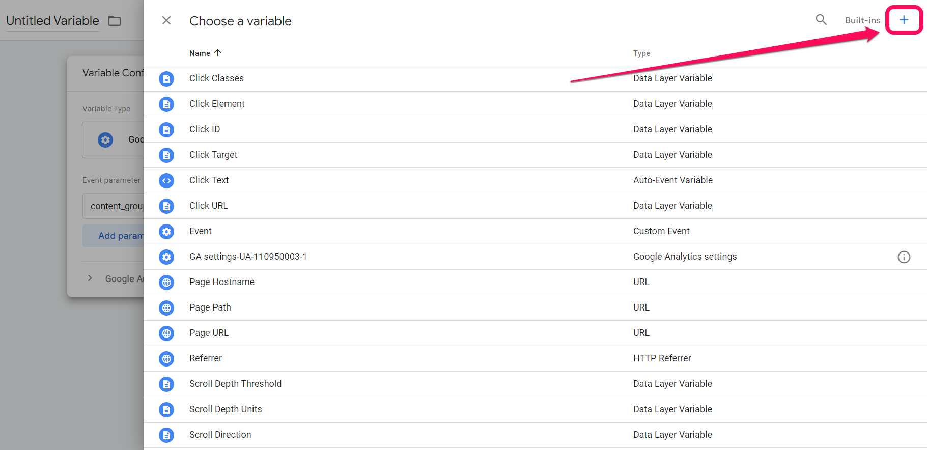 On the choose the variable section, we will click the plus sign at the top right corner to add the variable.