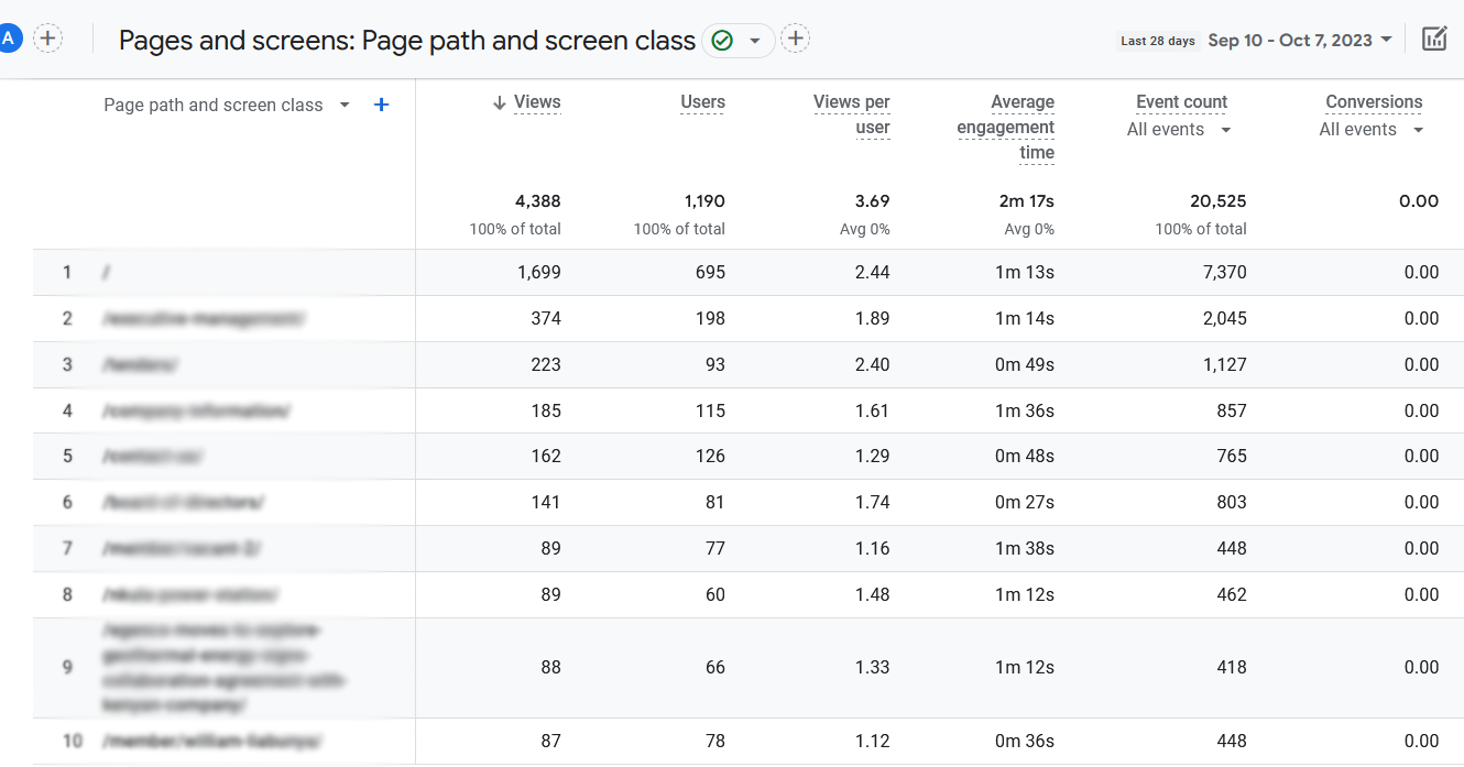 Google Analytics 4 (GA4) already provides insight into content performance through the Pages and screens report which shows data about the pages users visited on the website.