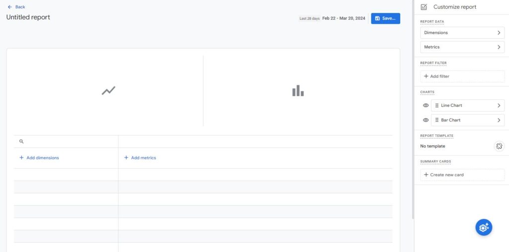 As mentioned before, there are two slots for the charts that you can use on the report and the tabular data view showing the dimensions and metrics.