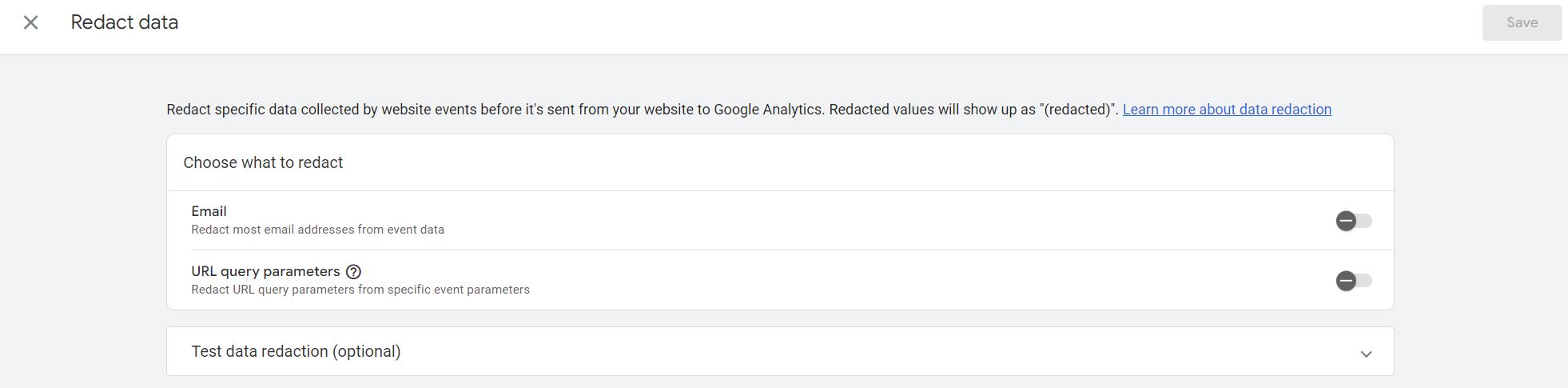 - When you create a new GA4 property, email data redaction is on by default. However, for older properties, you will have to manually turn it on.