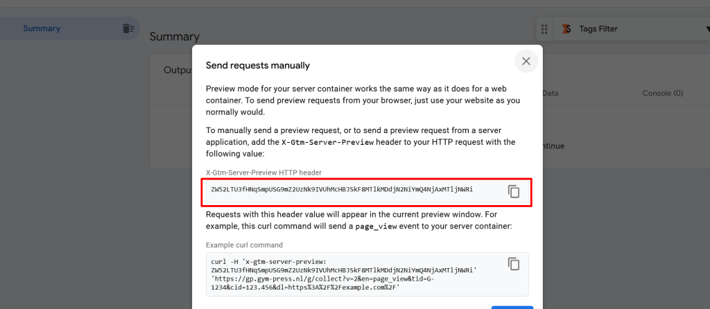 - Paste the X-Gtm-Server-Preview header you copied earlier.