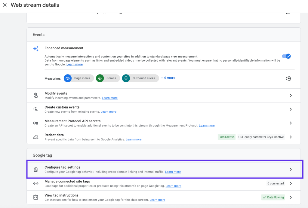 - Select your website data stream