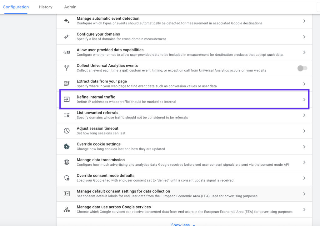 Start by telling GA4 what counts as internal traffic.