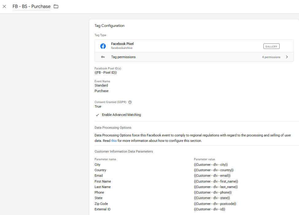 Meta Pixel Advanced Mathcing Conifigurations