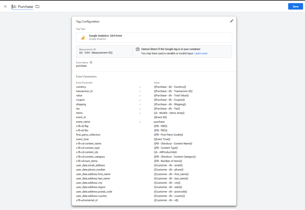 Meta Conversion API or Server Side Advanced Mathcing Conifigurations ( Note: GA4 template using for sending data client to server only)