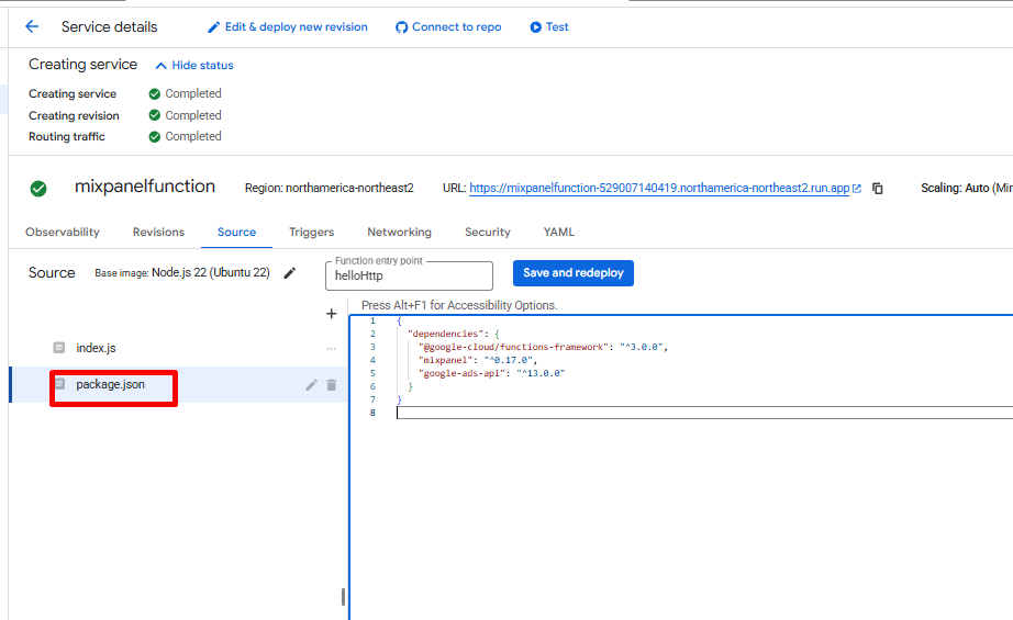 gcf-mixpanel-ads-google-daily - Region: Same region as your Cloud Function