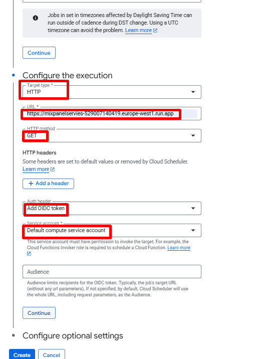 - Service account: Choose a service account with permission to invoke the Cloud Function
