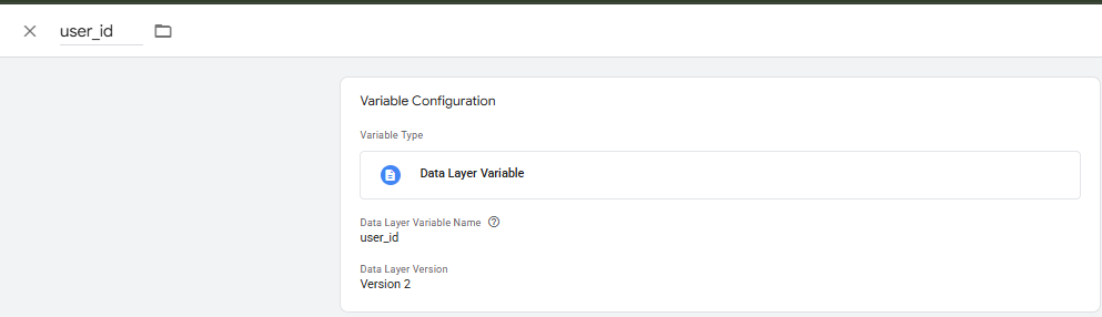 - Enter the name of the Data Layer key that contains the User ID (e.g., user_id). This variable will dynamically return the user’s unique ID when it’s available.
