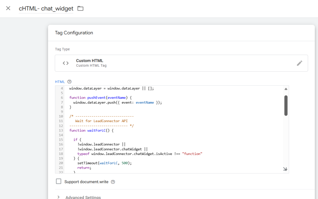 LeadConnector Chat Widget Tracking Listener Code