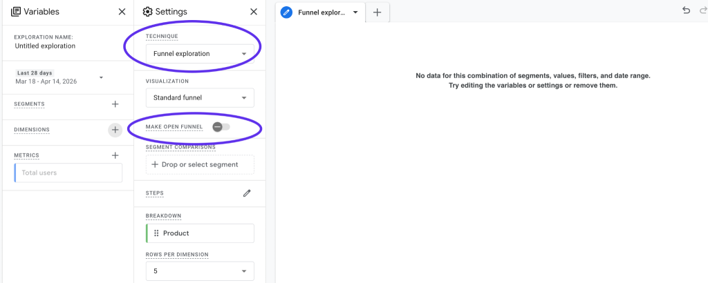 For example, if you want to understand how well your product page leads to a purchase, a closed funnel gives you a clean and focused view.